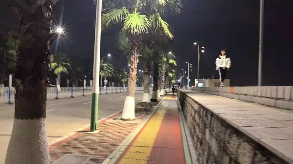 晚上下班,开车去接在海边和闺蜜一起在散步的老婆。